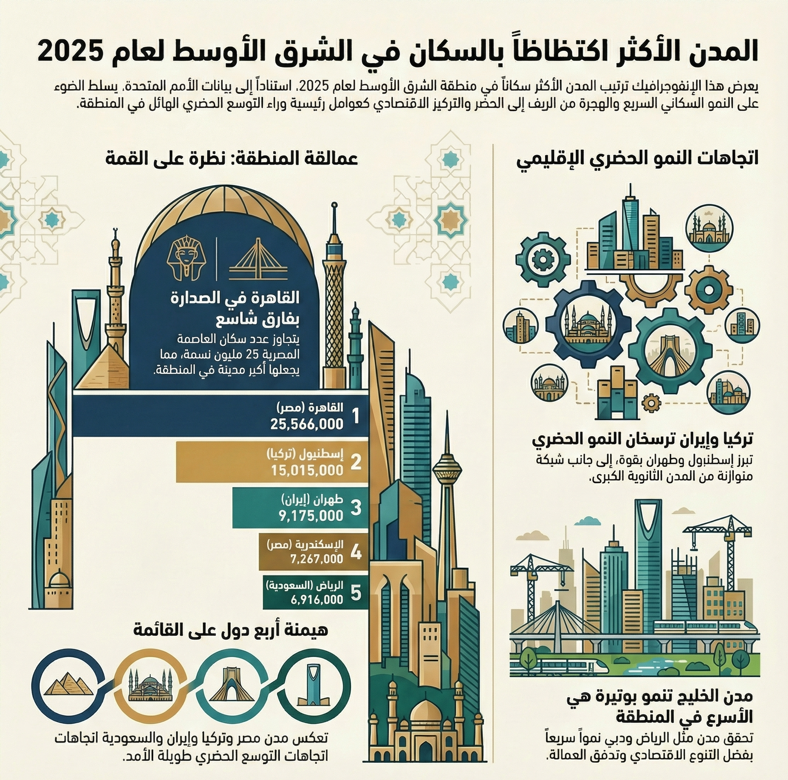 • المدن الأكثر سكانًا في الشرق الأوسط 2025